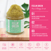 This spa quality sugar scrub is packed with green food goodness to provide a burst of hydration while detoxifying your skin.