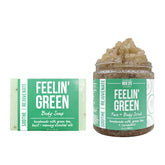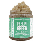 Feelin Green Face & Body Scrub (10.6 oz) - this sugar-based scrub contains a formulation of superfood greens to help calm and soothe the skin, leaving it dewy and hydrated. Cucumbers refresh and hydrate the skin, green tea detoxifies, while mint and basil essential oils help purify. Gentle enough for the face and body to help rejuvenate tired and dull skin.