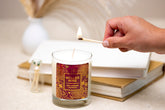 Have your home smelling like your favorite comforting winter drink with this festive clean burning soy massage candle. Snuggle up by the fire, light the candle, and enjoy the fruity and spicy aromas of sugar plum, mulberry, cranberry, cherry blossom, clove, and cinnamon to light up the cold winter nights. Afterwards, enjoy a relaxing and ultra-moisturizing massage for your hands, feet, and body with the warm melted soy cream, which will have you feeling all warm and cozy inside. The perfect self-care gift to give family, friends, and co-workers for Christmas, Hanukkah, Secret Santa, winter birthdays, holiday parties, housewarming or hostess gift. Deep burgundy background with gold foil type makes for a luxurious addition to any festive and holiday decorated home.