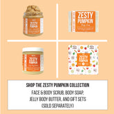 A brand new formula for our fall favorite collection, featuring our first every natural jelly textured body butter only available in the fall! A natural trifecta of nourishing castor oil, soybean oil, and olive oil glide on the skin to deeply hydrate and prevent dryness during the cold winter months. Cocoa butter creates a barrier to retain moisture for hydrated skin all day, every day. The best part about this moisture-packed jelly butter: there is no grease when applying! Breathe in the seasonal, fall scents of pumpkin with a punch of zesty citrus while it's here.